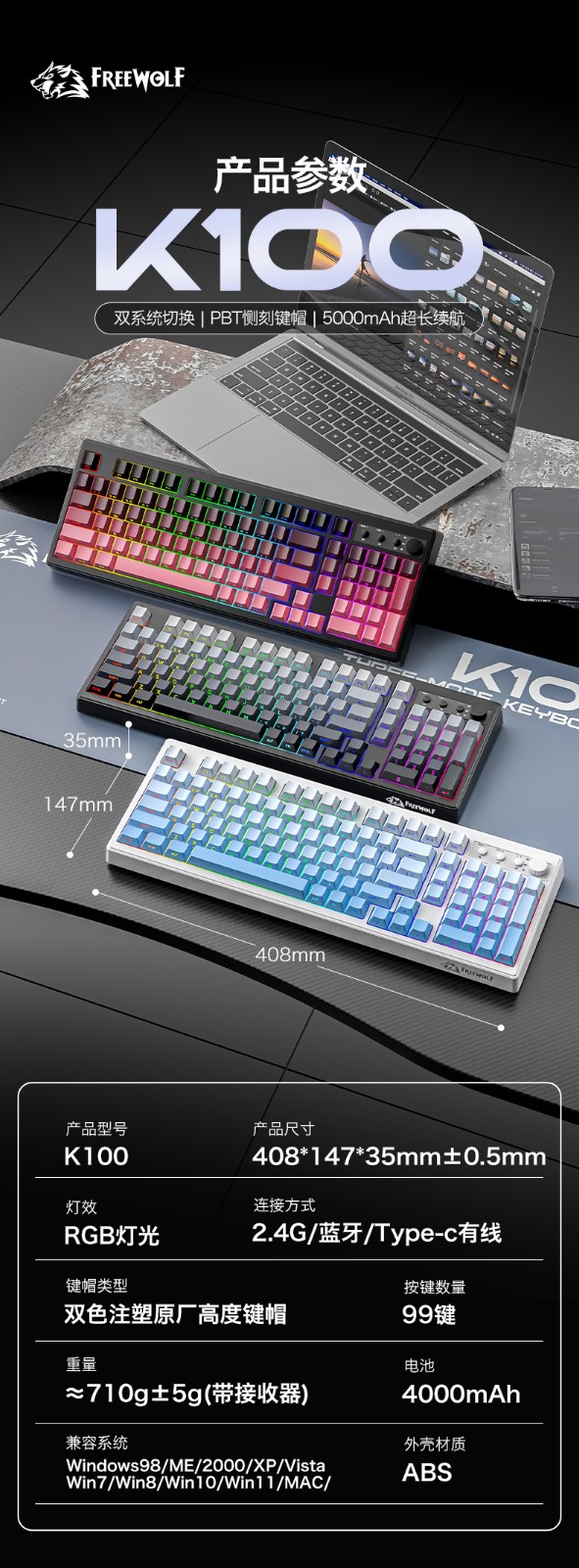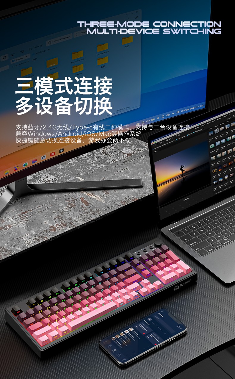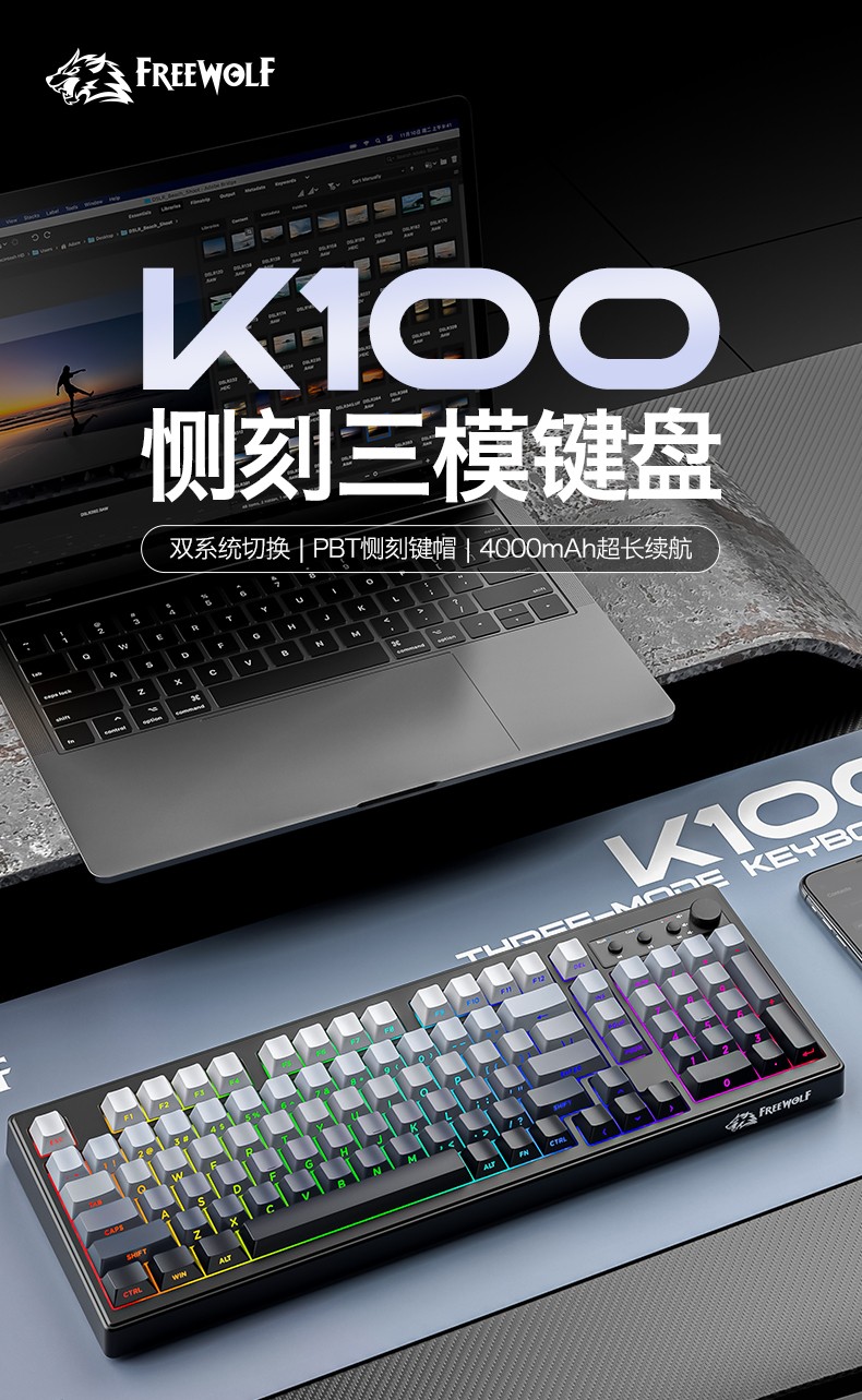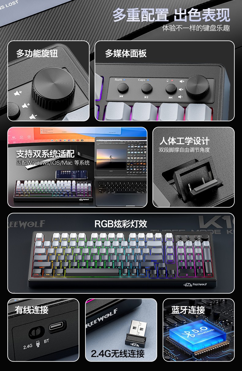 自由狼K100三模RGB键盘