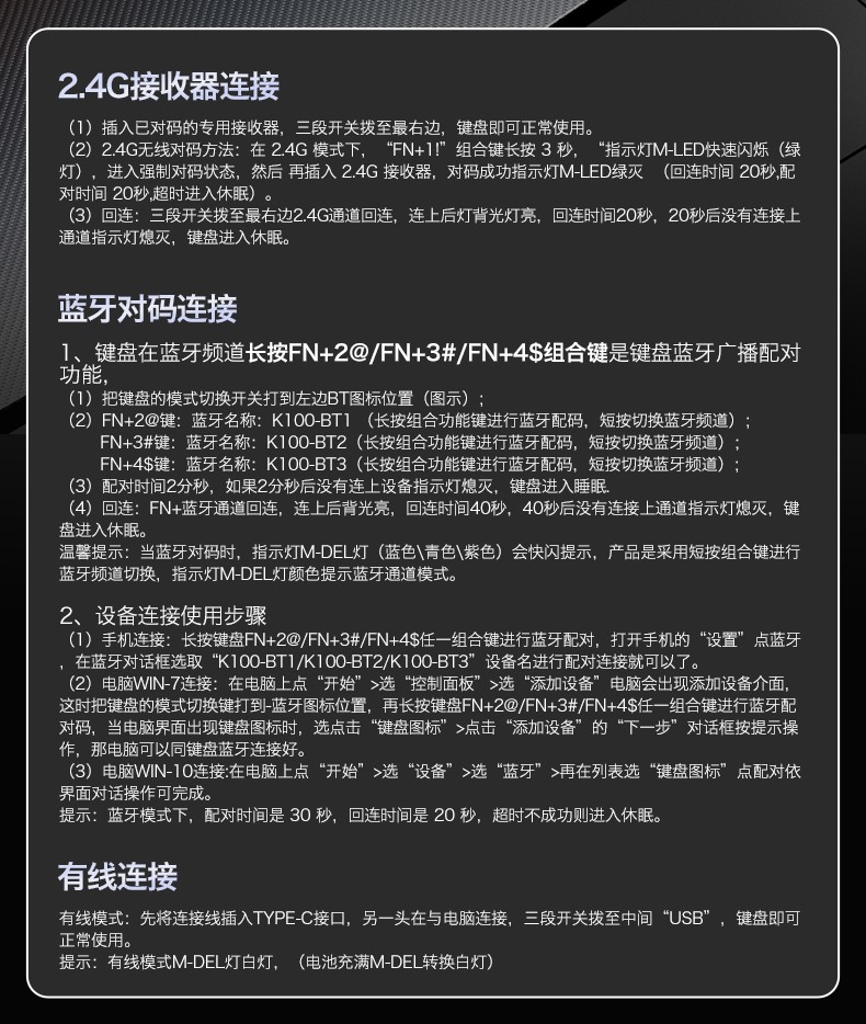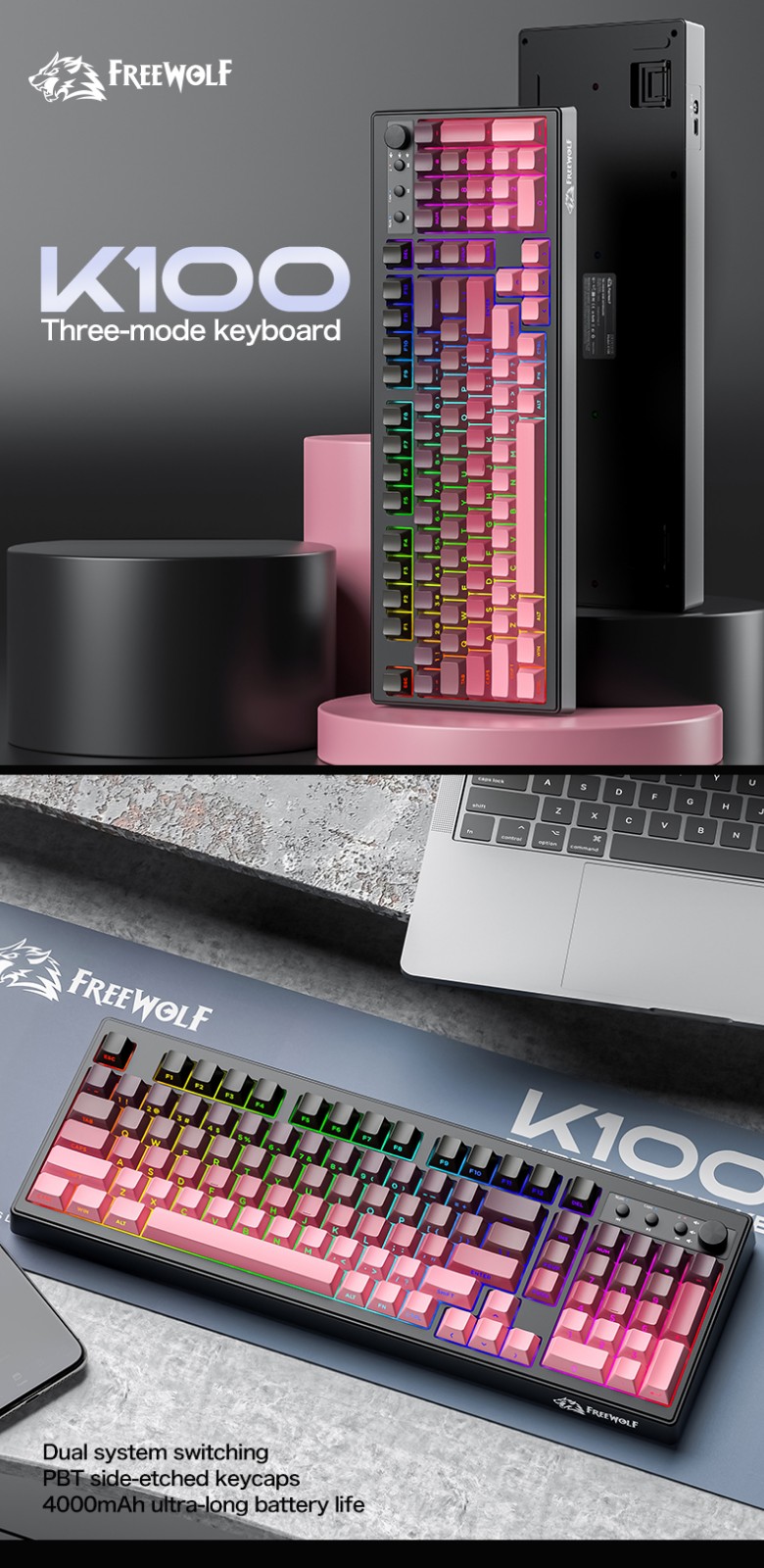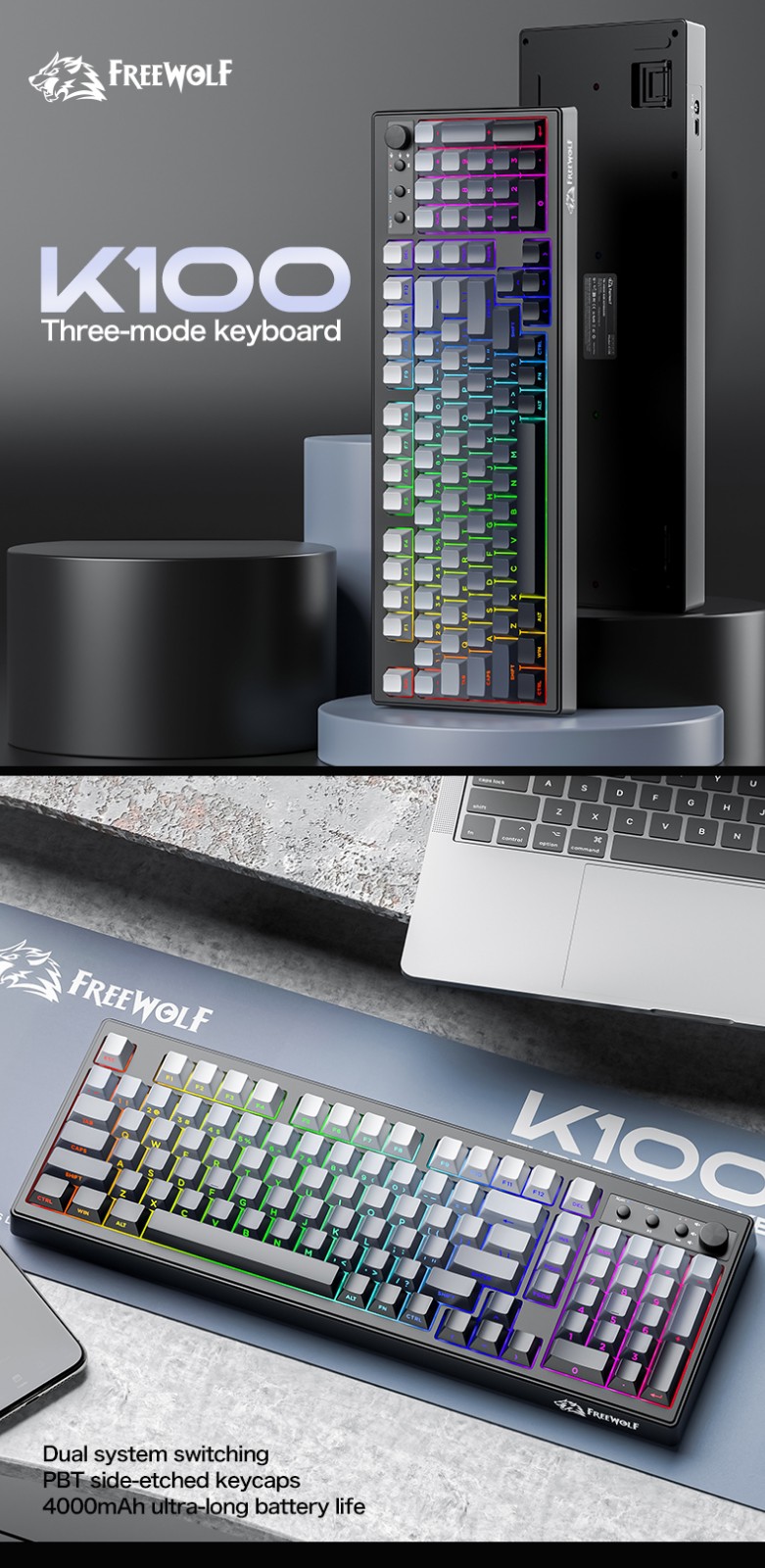 自由狼K100三模RGB键盘